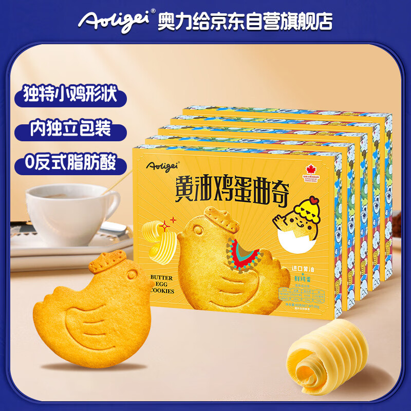 奥力给黄油鸡蛋曲奇饼干80g*5盒 薄脆动物小鸡饼干儿童宝宝网红休闲零食