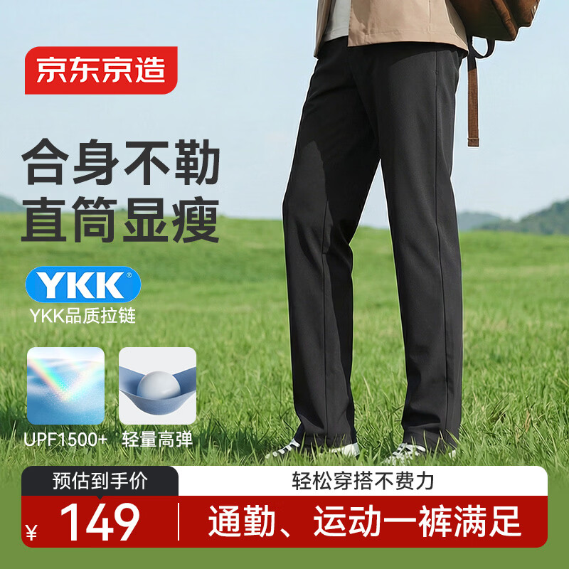 京东京造[轻松裤lite]休闲裤子男款春夏季新款防皱高弹直筒男裤 黑色 L