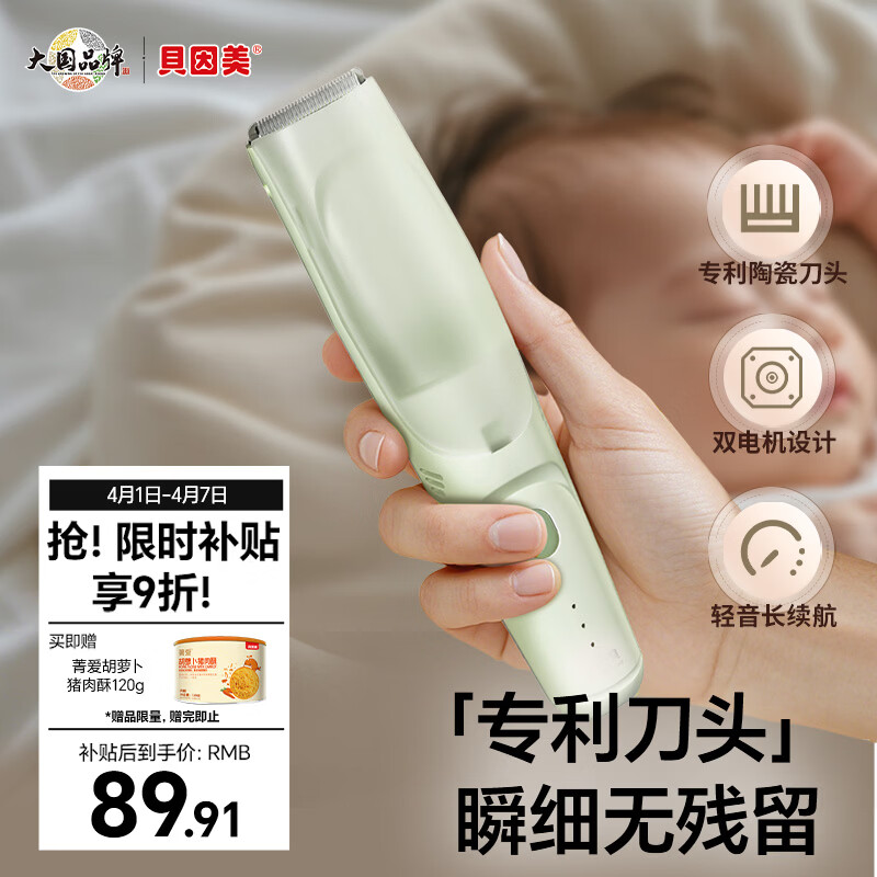 贝因美婴童吸发理发器静音防水充电式 自动吸发婴儿理发器宝宝剃头神器