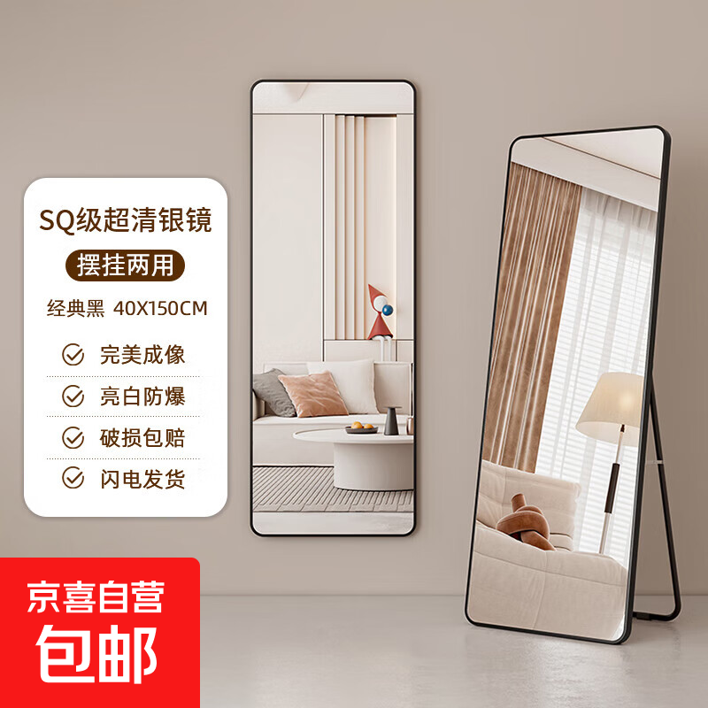 【大牌同厂】镜子全身镜穿衣落地网红女生卧室宿舍挂墙立体试衣镜 【圆角】150x40cm经典黑【高清成像 破损包赔】