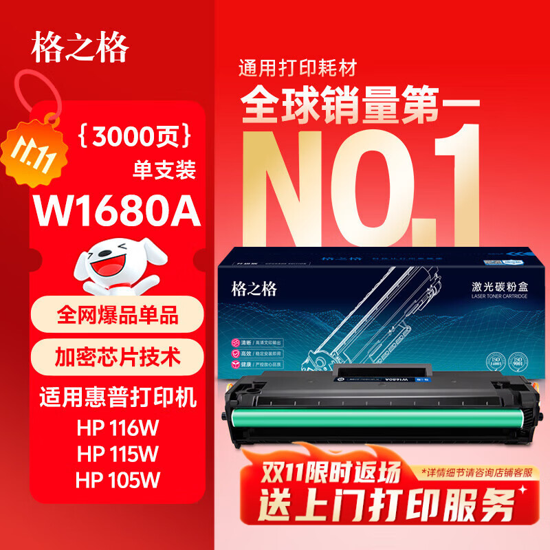 格之格适用惠普116w硒鼓 117w 115w硒鼓 hp105w 115a 115nw 117w 116w打印机 w1680a硒鼓 惠普168a硒鼓大容量易加粉