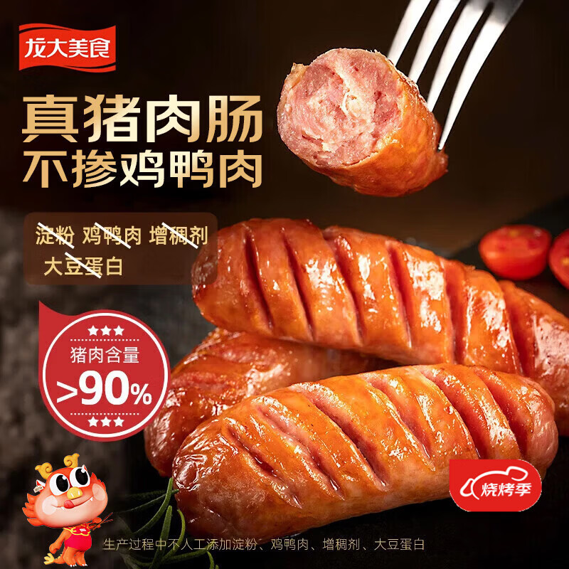 龙大美食四季猪肉肠800g/10根 猪肉烤肠 黑猪鲜肉肠 火山石烤肠香肠烧烤