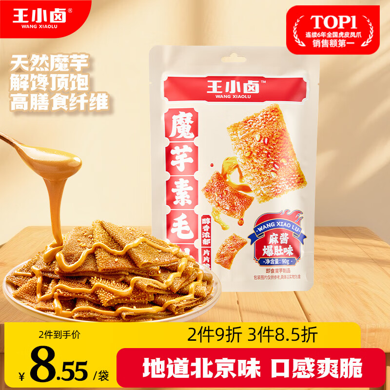 王小卤脆爽魔芋素毛肚 杨幂推荐麻酱味90g袋素食独立包装办公室休闲零食