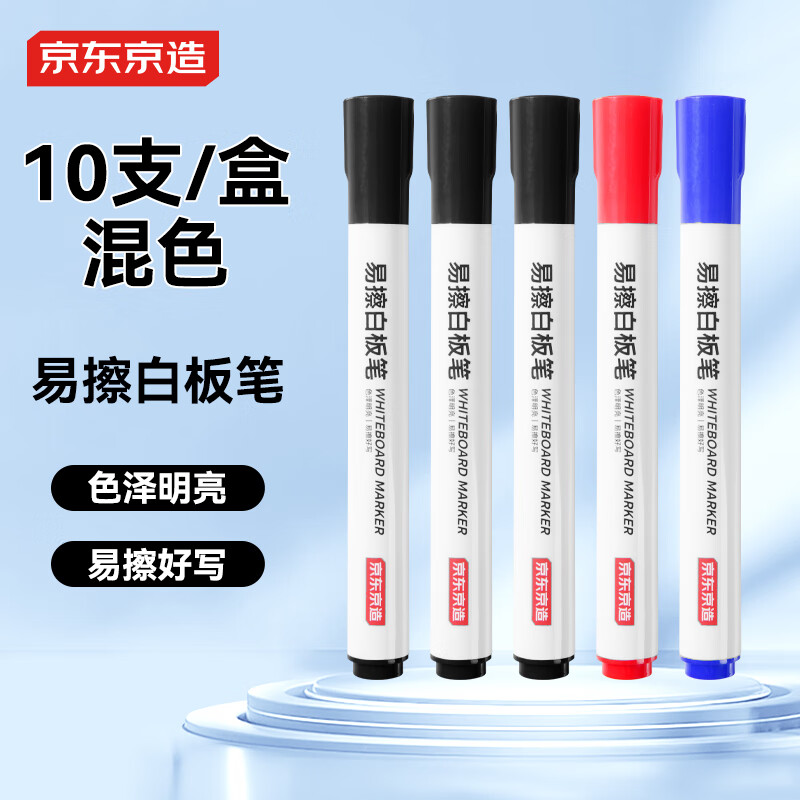 京东京造易擦白板笔混色10支装(7支黑+2支蓝+1支红) 老师教学办公会议 耐磨可擦易擦黑板笔可擦笔JD1704