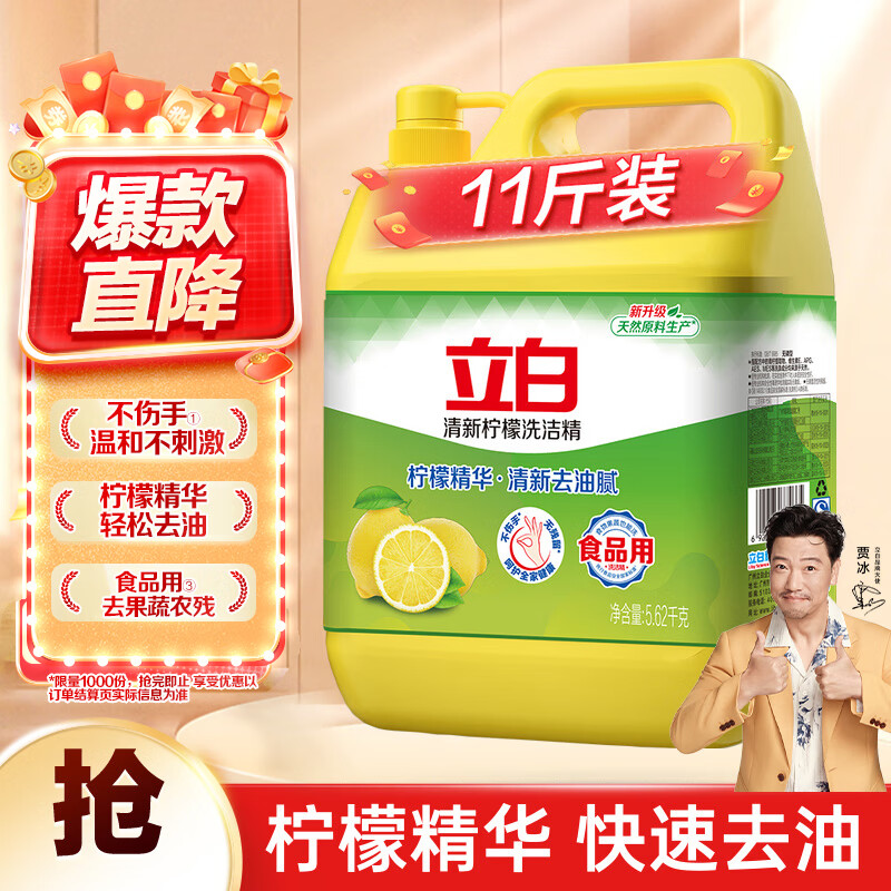 立白洗洁精清新柠檬 强效去油不伤手 A类食品用 餐馆酒店大桶装5.62kg