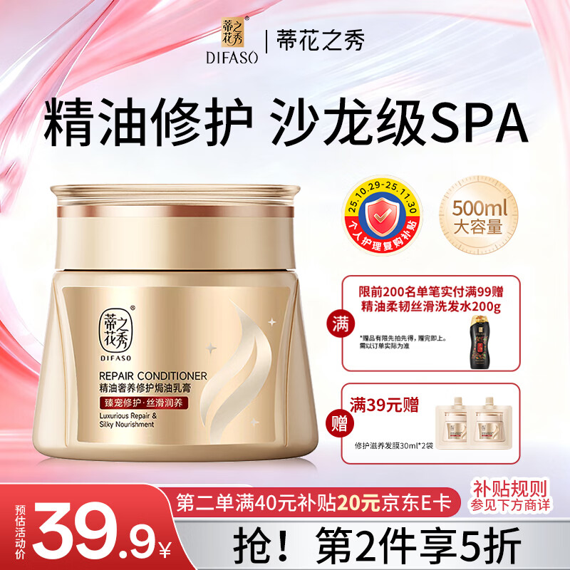 蒂花之秀 DIFASO免蒸发膜精油奢养修护焗油乳膏500ml 柔顺修护烫染干枯毛躁护发素