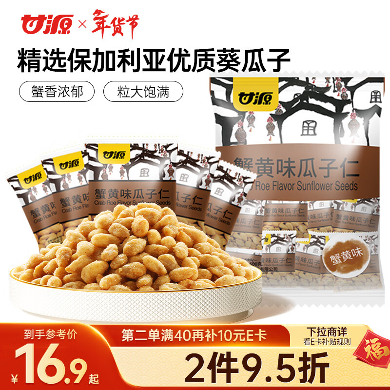 甘源牌蟹黄味瓜子仁免剥壳葵瓜子休闲零食坚果炒货食品特产小吃量贩500g