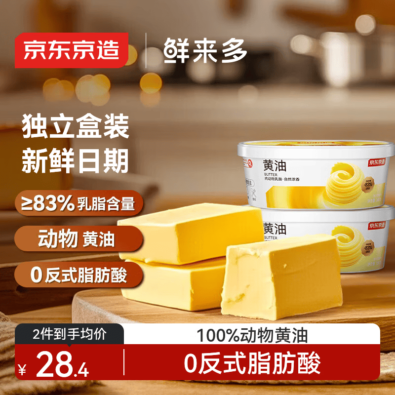 京东京造 鲜来多动物黄油淡味200g*2 无添加盐冷藏锁鲜烘焙原料煎牛排