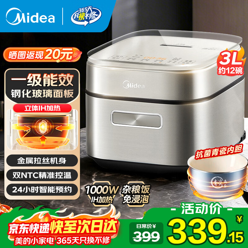 美的IH加热电饭煲电饭锅2-3-4-5人用 家用陶瓷内胆电饭煲3升4升快速饭柴火饭节能一级二级能效电煮饭煲 【一级能效 IH加热】25年新品 3L