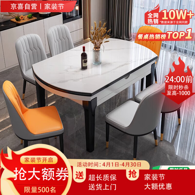 岩板餐桌椅子简约轻奢折叠桌伸缩可变圆桌小户型饭桌 【黑+白框架】亮光雪山白-菠萝椅款 1.2米 一桌四椅【12MM加厚岩板】