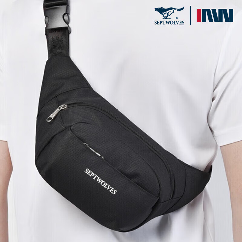 七匹狼(SEPTWOLVES)男士斜挎包单肩腰包胸包包小型轻便手机包通勤休闲运动便携小背包 黑色