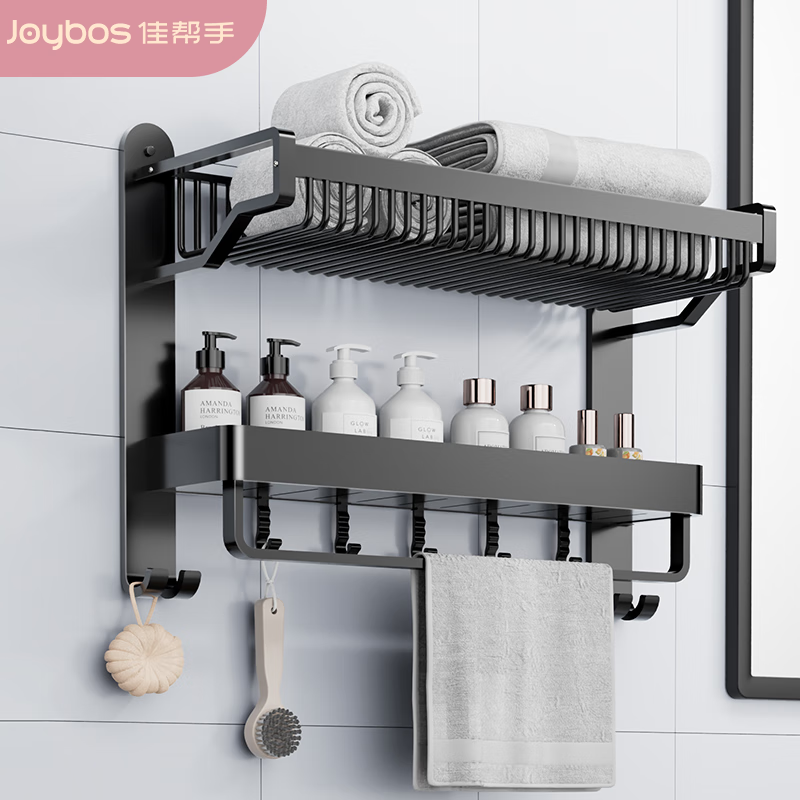 佳帮手卫生间置物架免打孔毛巾架浴室用品置物架太空铝壁挂浴巾架-2层