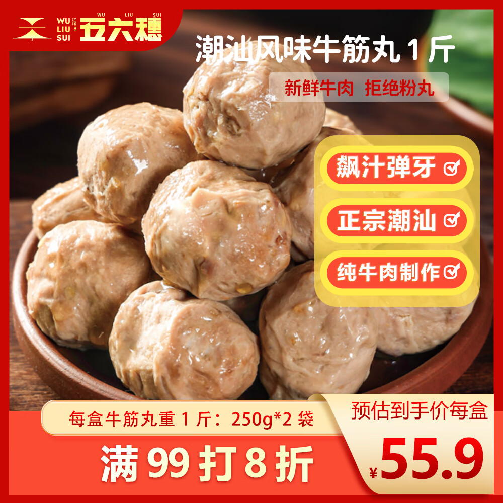 五六穗潮汕风味正宗牛筋丸1斤 纯牛肉制作 牛肉含量≥90% 烧烤火锅食材