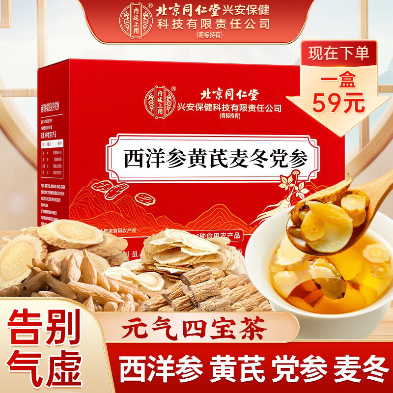 同仁堂元气四宝茶黄芪党参茶麦冬西洋参男女滋补养生茶共40小袋