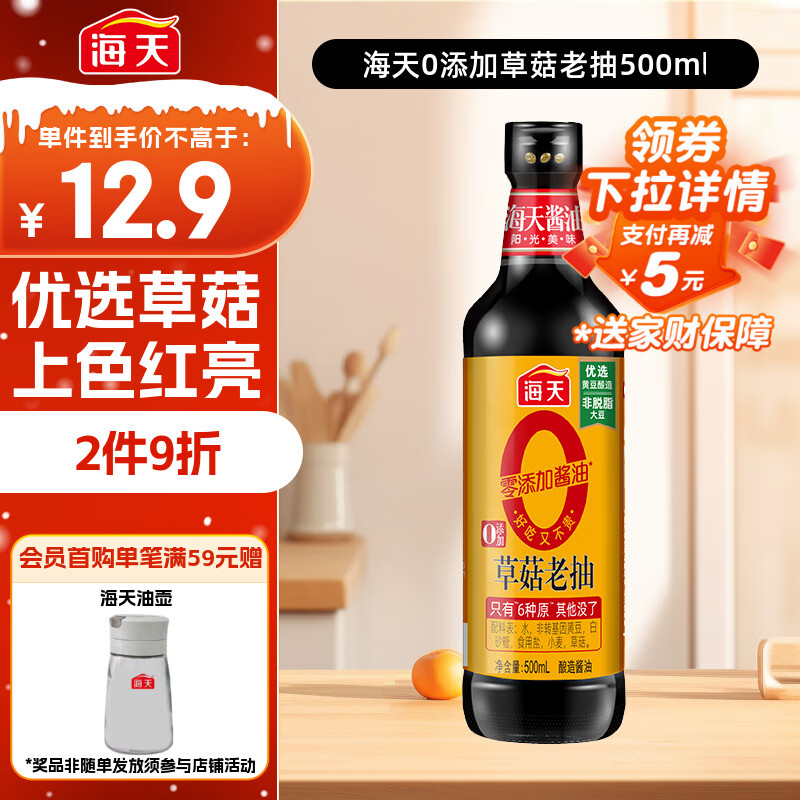 海天 0草菇老抽酱油500ml【0添加 一级酱油】草菇系列 红烧上色