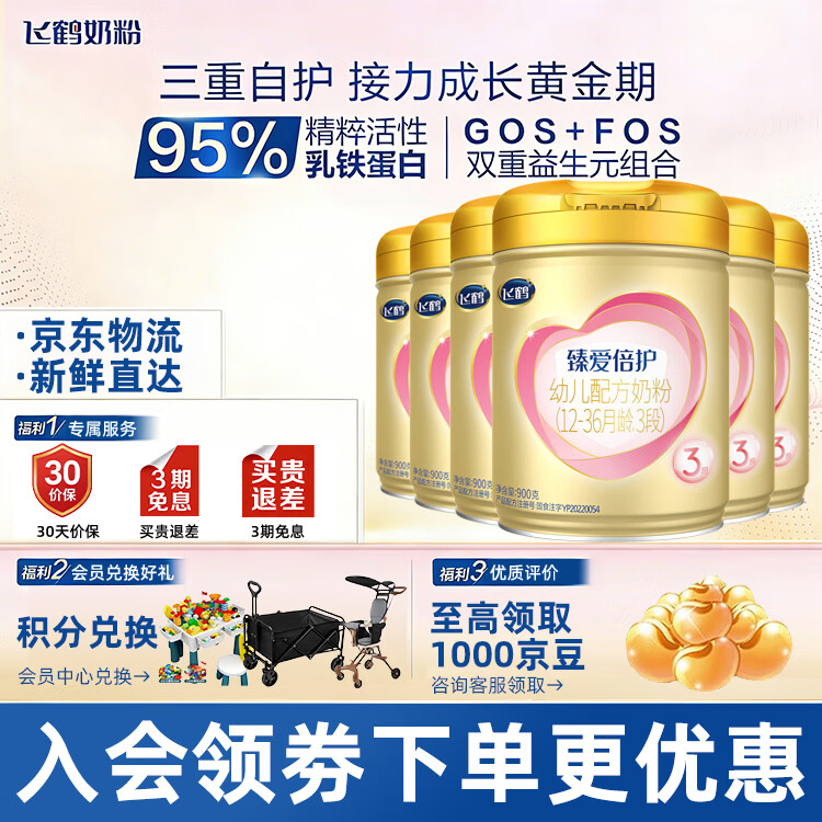 飞鹤臻爱倍护3段(1-3岁)幼儿配方奶粉 含乳铁蛋白(咨询优惠价 900g*6罐【咨询客服更优惠】