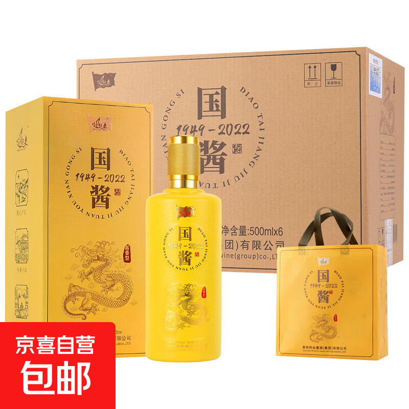 国酱1949 高档礼盒 贵州钓台酱酒 53度纯粮酱香白酒粮食口粮酒 53度 500mL 6瓶 整箱
