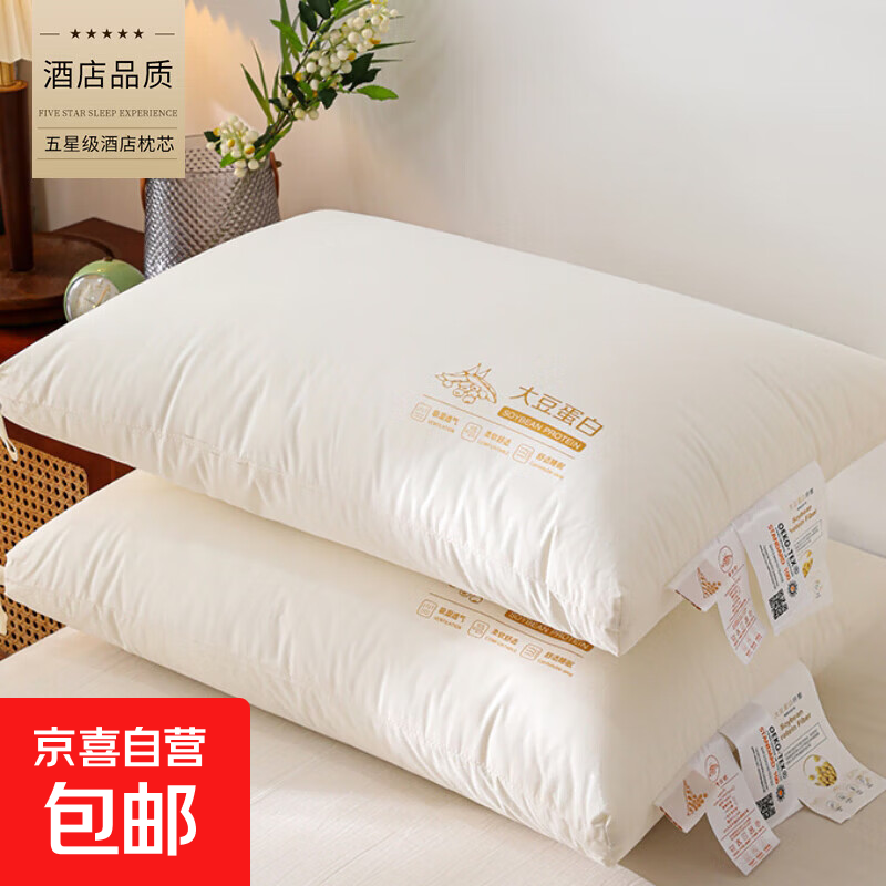五星级酒店枕头枕芯一对装蓬松枕芯内胆护颈椎助睡眠学生单人整头 捏角大豆枕 B类 【一对装】 中枕 8cm 48*74cm