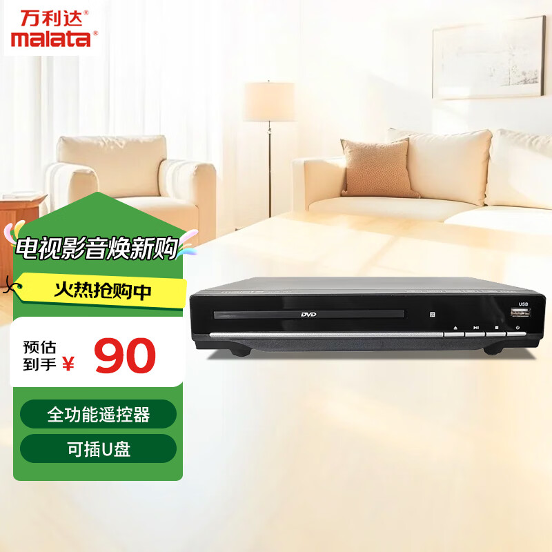 万利达 DVD播放机 光盘播放机CD机VCD DVD光驱播放器 影碟机 USB音乐 黑色