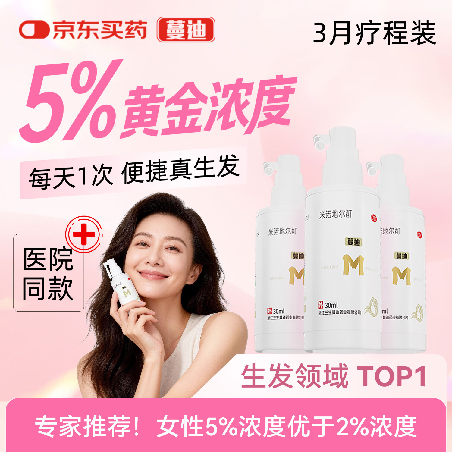 蔓迪女士生发喷雾30ml*3瓶【超值疗程装】5%米诺地尔酊(脱发严重女可用)