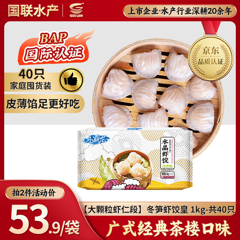 GUO LIAN国联 小霸龙冬笋虾饺皇1kg共40只广式粤式早茶早餐预制菜半成品