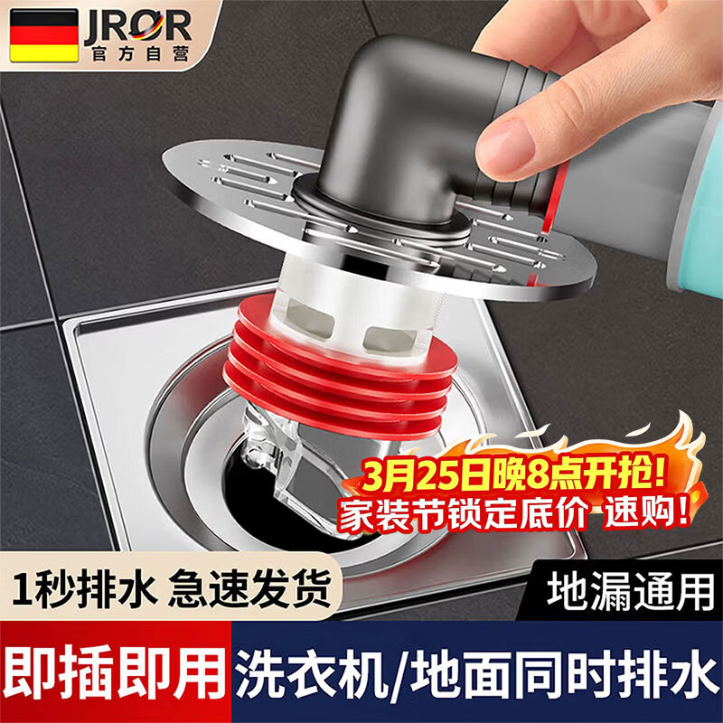 JROR【德国】洗衣机下水管接地漏排水接头二合一卫生间防臭防反味神器