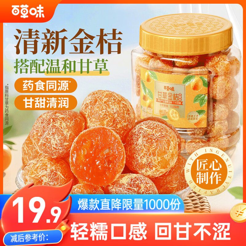 百草味甘草金桔400g官方正宗金桔金橘干特产蜜饯滋润休闲零食罐装