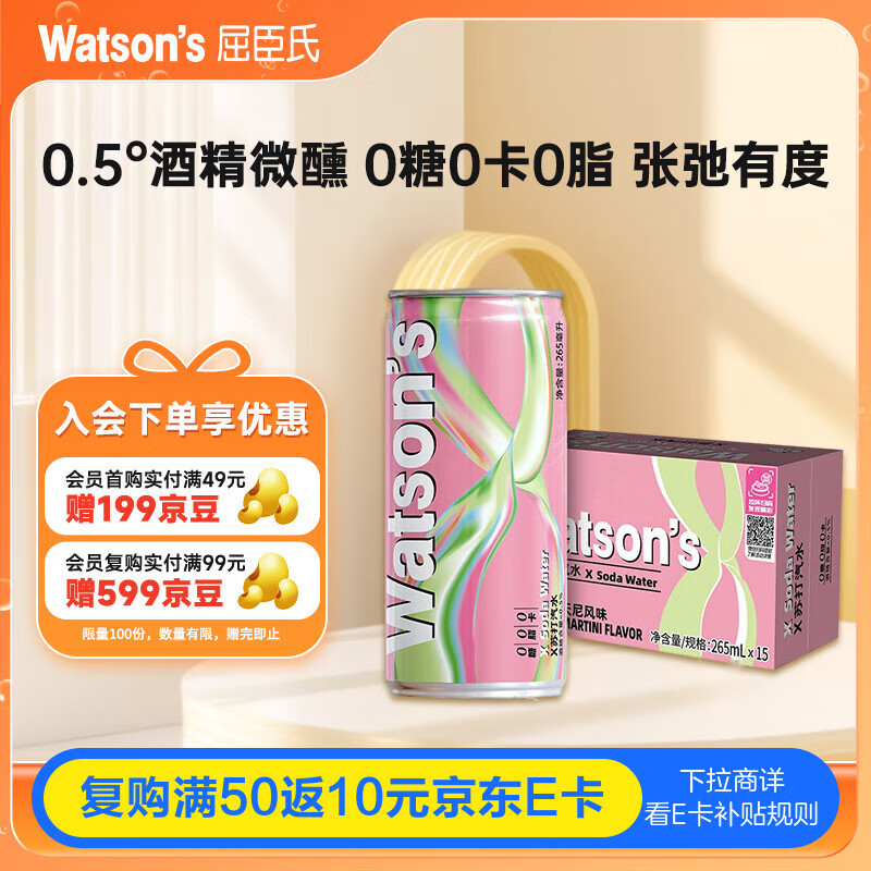屈臣氏(Watsons)X苏打荔枝马天尼苏打水0糖0卡0脂0.5%酒精微醺饮料265mL*15罐整箱