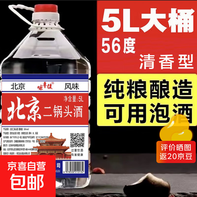 北京咏丰佳正宗二锅头56度清香高度白酒散装大桶桶装厂家直发清仓 56度 5L 1桶