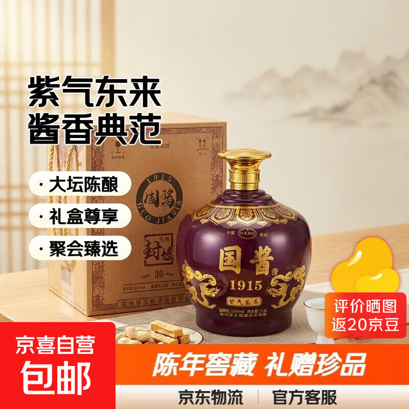 贵州国酱1915 紫气东来 53度3斤大坛 1.5L酱香型白酒 手提礼盒 53度 1500mL 1坛