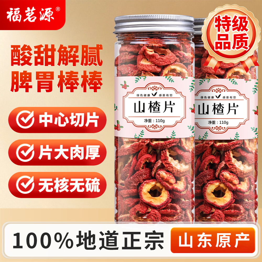 福茗源花果茶 山楂干 精选特级品质中段无硫无核山楂片中心圈泡水喝110g