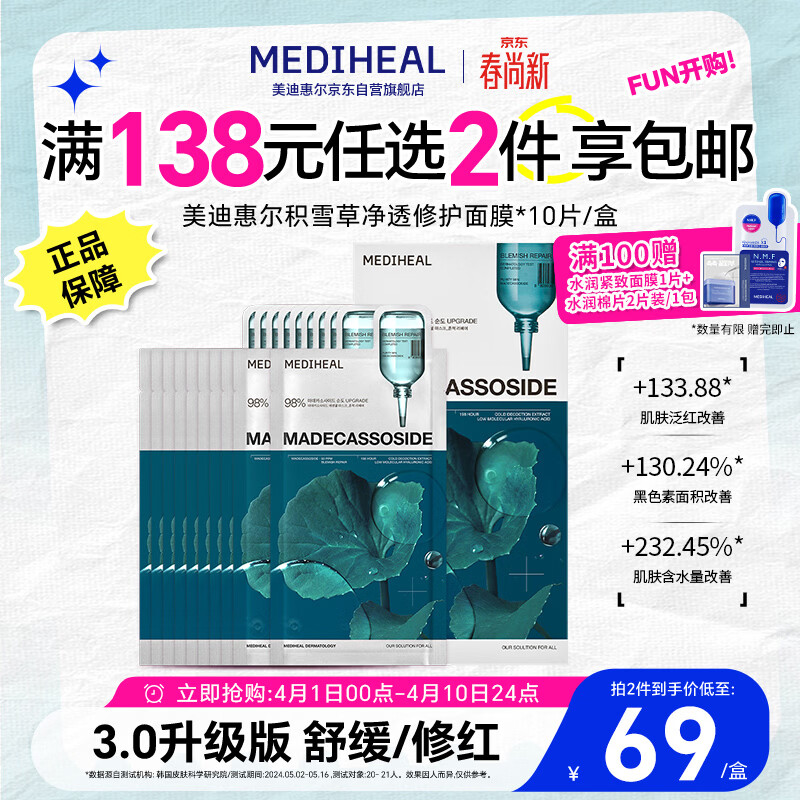 美迪惠尔积雪草净透修护面膜淡痘痕3.0升级版10片/盒男女生日礼物