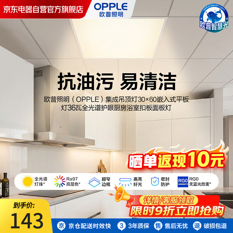 欧普照明(OPPLE)厨房浴室扣板集成吊顶灯30x60嵌入式平板灯面板灯36瓦全光谱护眼