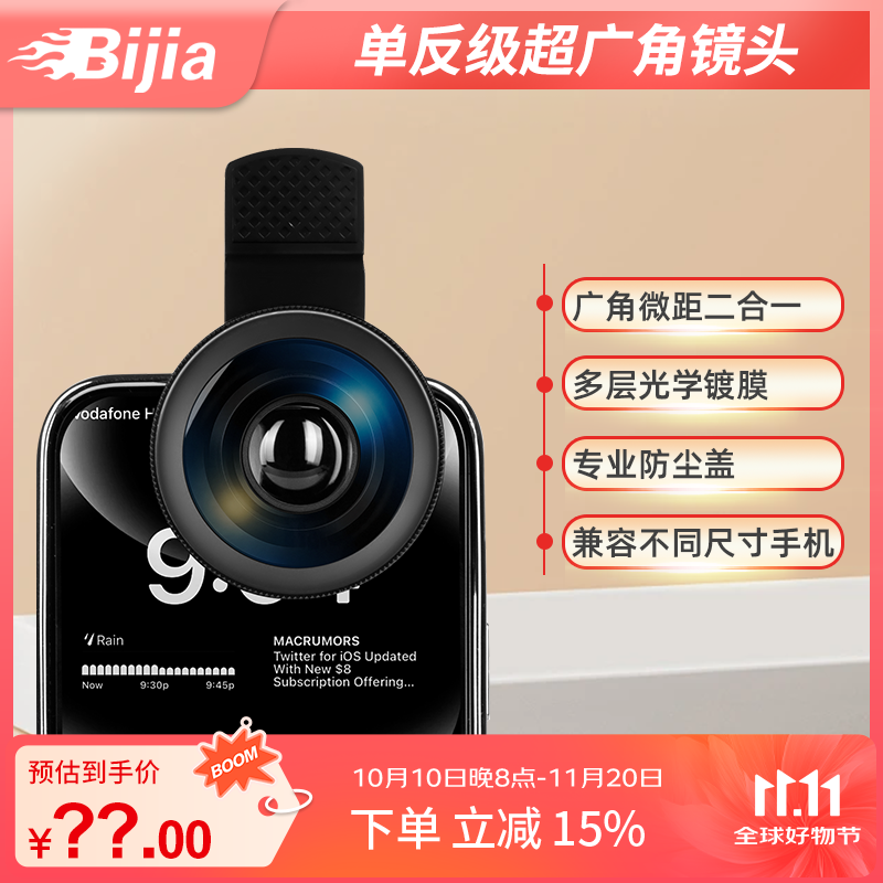 BIJIA9k超清广角镜头直播通用外置广角镜头微距二合一 9k超广角镜