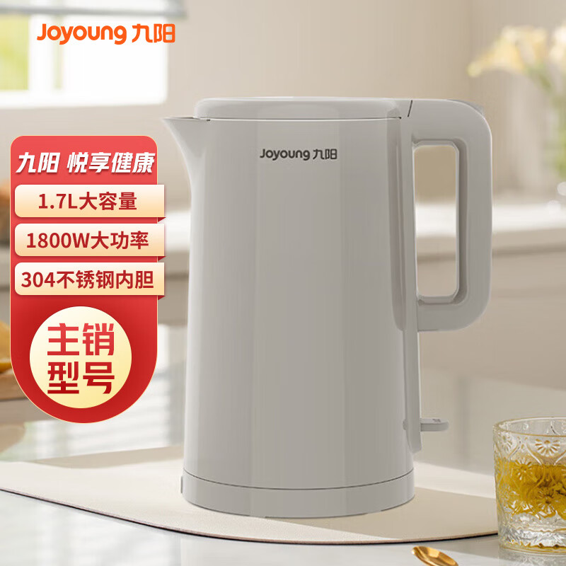 九阳(Joyoung)ZMD安心系列 热水壶电水壶1.7L 1800W大功率双层防烫304不锈钢开水壶 K17FD-W6320