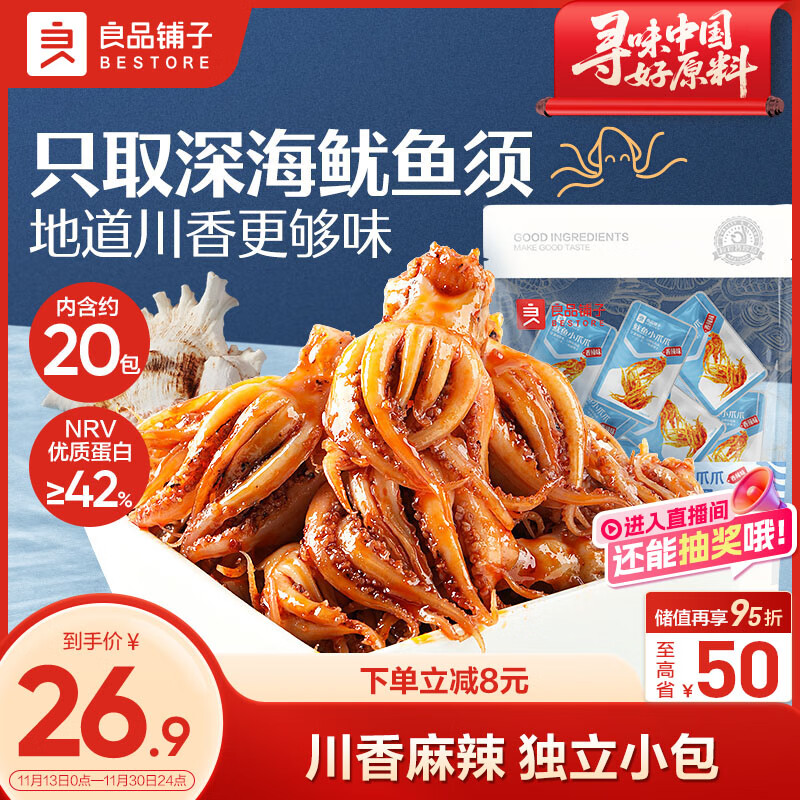 良品铺子鱿鱼须麻辣味200g海鲜休闲零食开袋即食鱿鱼丝鱿鱼仔解馋香辣小吃
