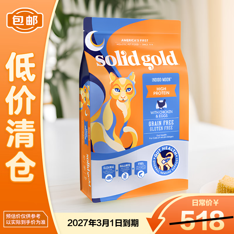 素力高猫粮进口高蛋白金装金素鸡成猫幼猫全价猫粮12磅/5.44kg