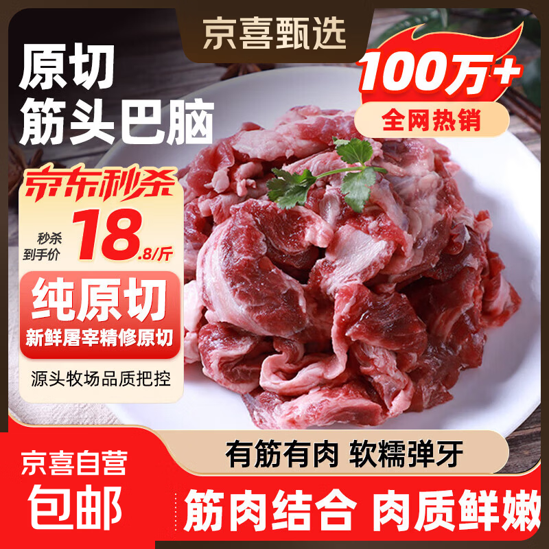 谷饲原切筋头巴脑牛肉筋冷冻生鲜烧烤火锅半成品生鲜食材年货 原切筋头巴脑净重4斤