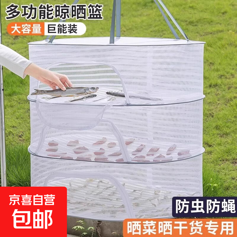 晒菜网家用晒鱼干防蝇笼晾晒网神器折叠晒地瓜萝卜晒东西的干货网 三层【50X70CM】升级拉链式