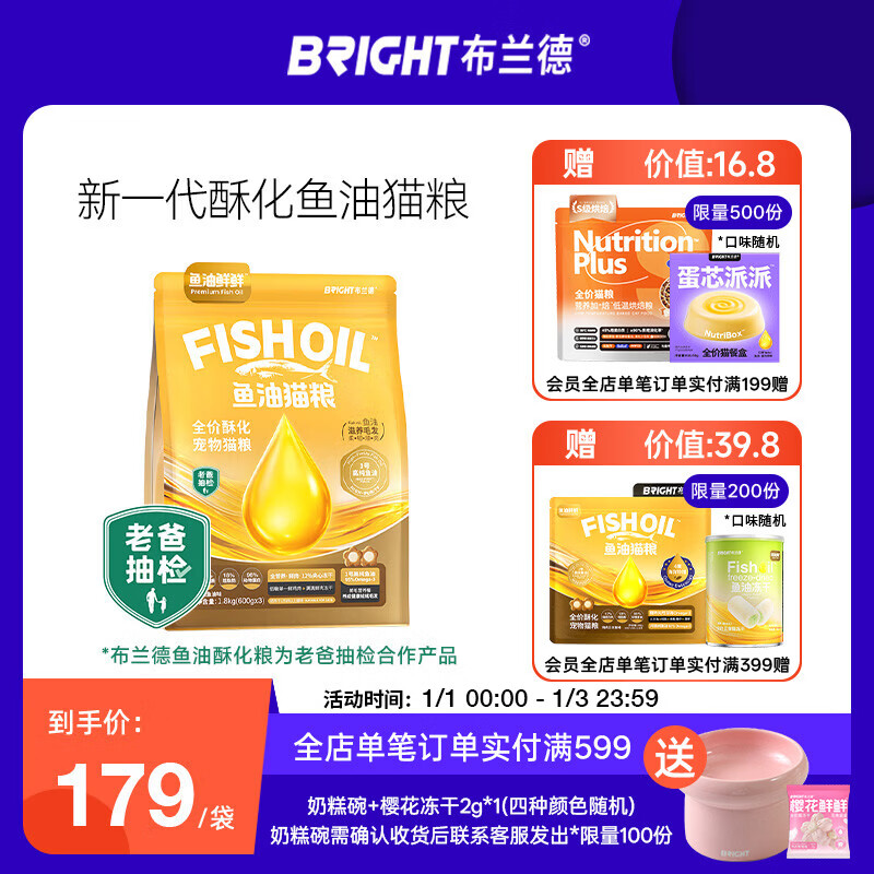 布兰德高纯鱼油猫粮美毛防掉毛适口护肠胃烘焙成幼猫粮鸡肉味1.8kg