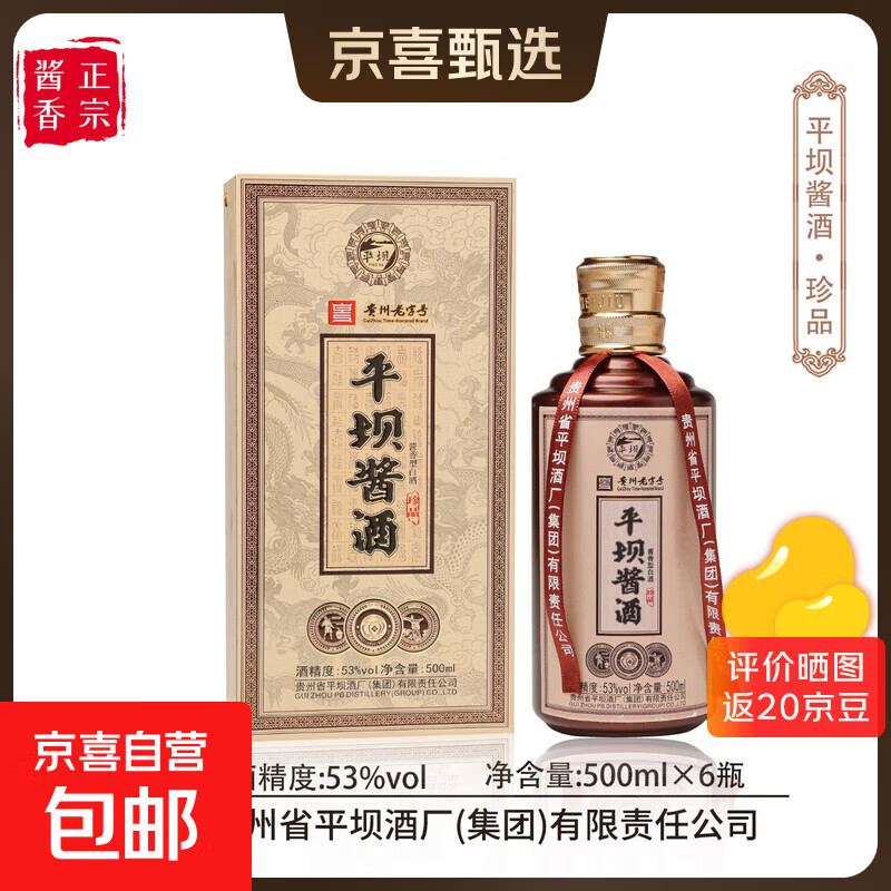 平坝酱酒珍品酱香型53度500ml*6瓶整箱装纯粮食酿造宴请上档次 53度 500mL 6瓶 平坝酱酒珍品