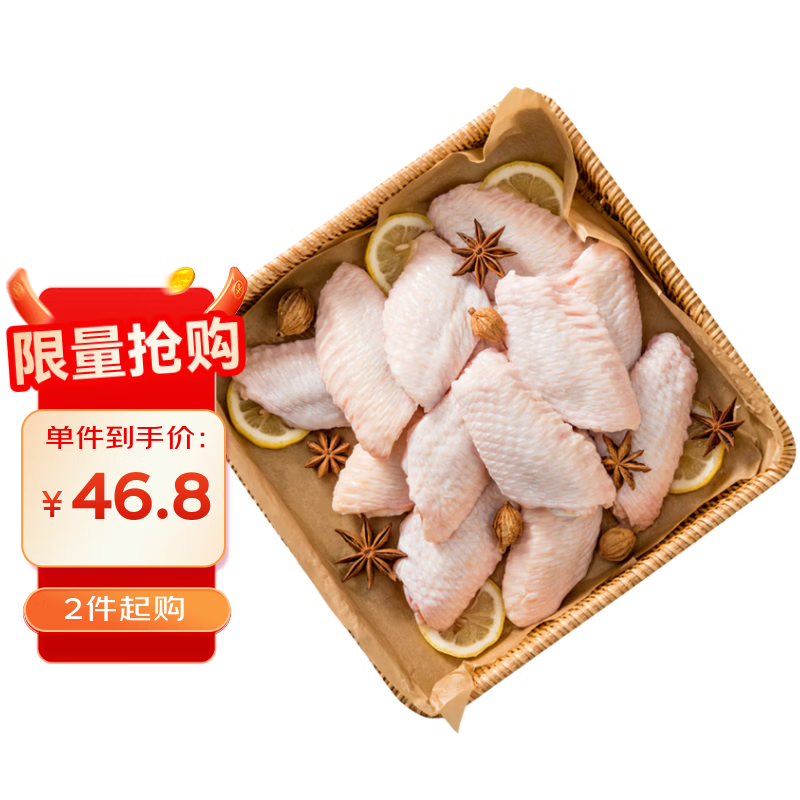 京觅 国产优质鸡翅中 净重2斤 单翅40g以上 冷冻 京东旗下自有品牌