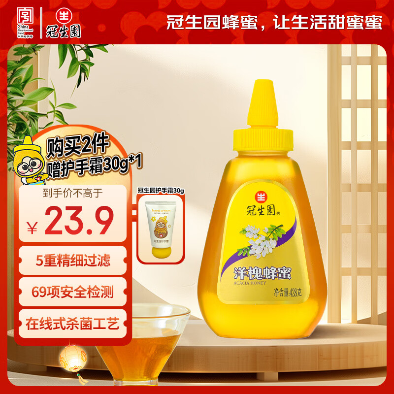 冠生园 洋槐蜂蜜428g挤压瓶 纯槐花蜂蜜 中华老字号 早餐牛奶冲饮礼品