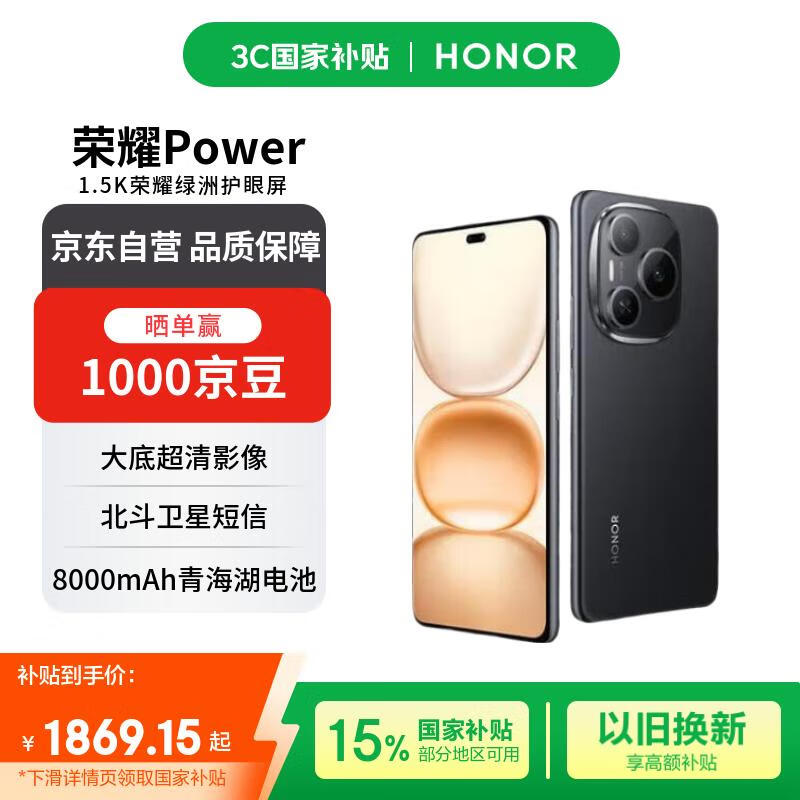 荣耀Power 12+256 幻夜黑 荣耀自研C1+通讯芯片 8000mAh青海湖电池 十面抗摔【赠话费券】国家补贴