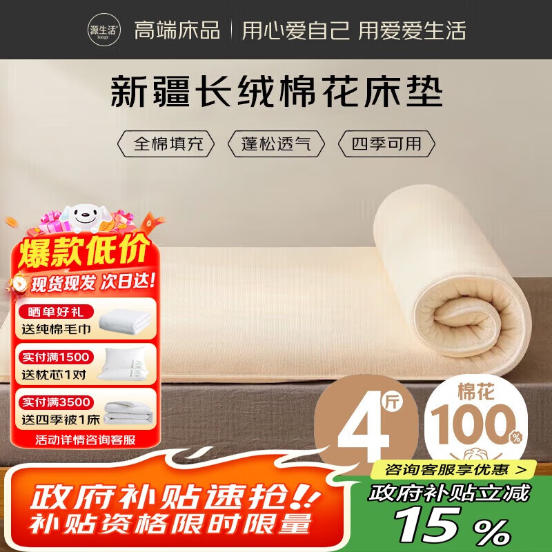 源生活新疆棉花床褥垫 单人软褥子加厚可折叠冬季垫被 120x200cm【4斤】