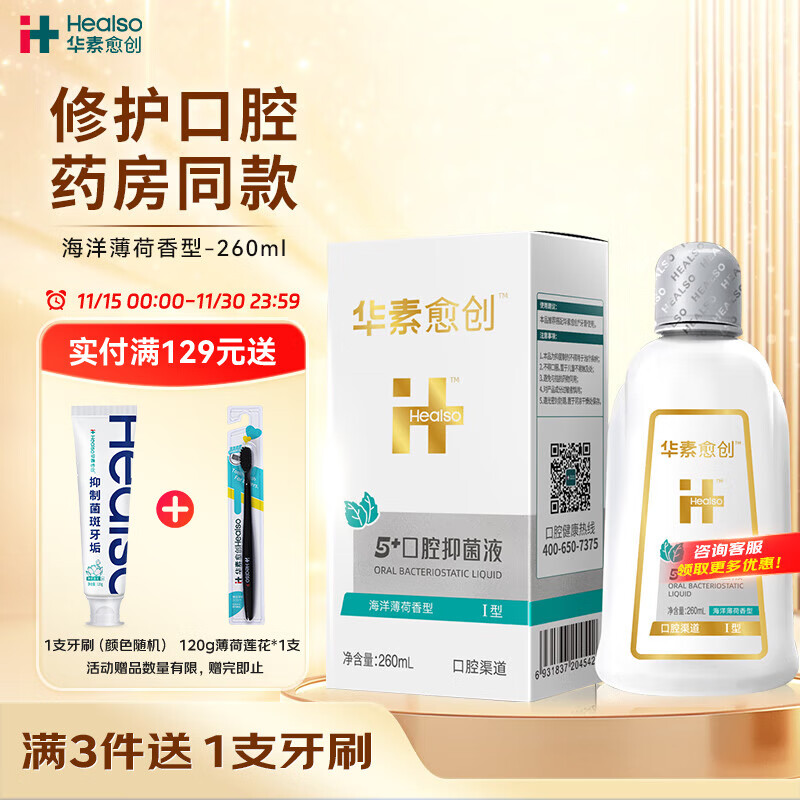 华素愈创热门商品 深层清洁护理 洗牙拔牙术后专用抑菌液 5+薄荷香260ml