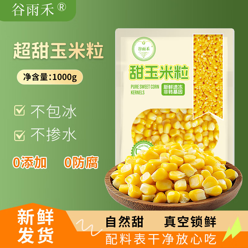 京鲜生 甜玉米粒1kg 水果玉米粒代餐冷冻沙拉蔬菜 速冻食品半成品菜