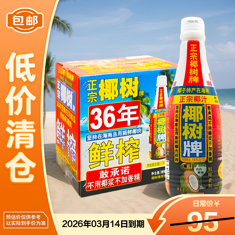 椰树 椰汁 1.25L*6瓶/箱 整箱装 植物蛋白饮料 【临期清仓】