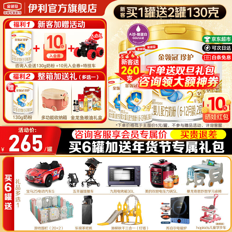 伊利金领冠珍护2段900g旗舰店奶粉6-12个月较大婴儿配方牛奶粉三代OPO 【咨询享会员价】2段 900g 6罐