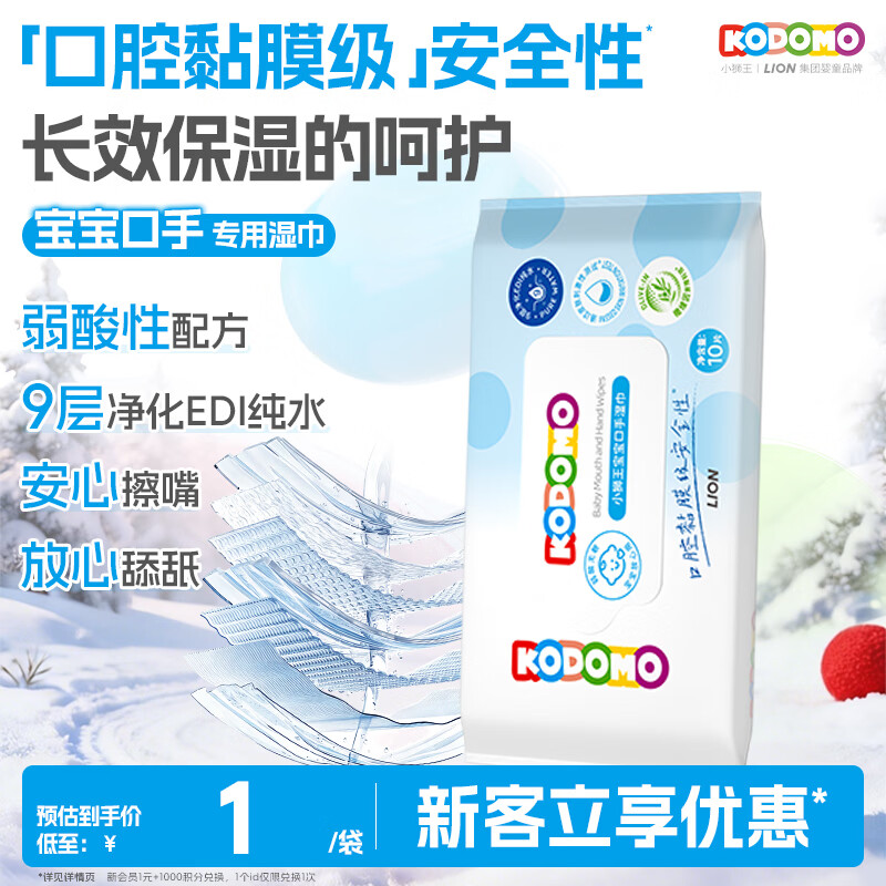 狮王(Lion)小狮王婴儿手口湿巾 儿童湿纸巾擦手口屁屁亲肤温和10抽